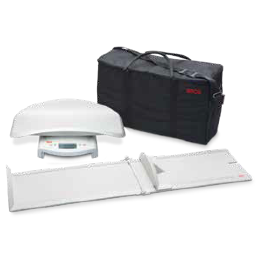 - La báscula 2 en 1 para bebés y niños pequeños más la tabla de medición pueden transportarse fácilmente en un amplio estuche de transporte
