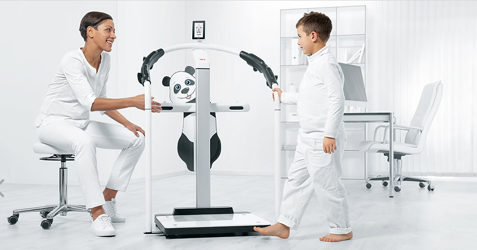 Báscula médica profesional con pasamanos, diseñada para un pesaje seguro, preciso y con gestión avanzada de datos.